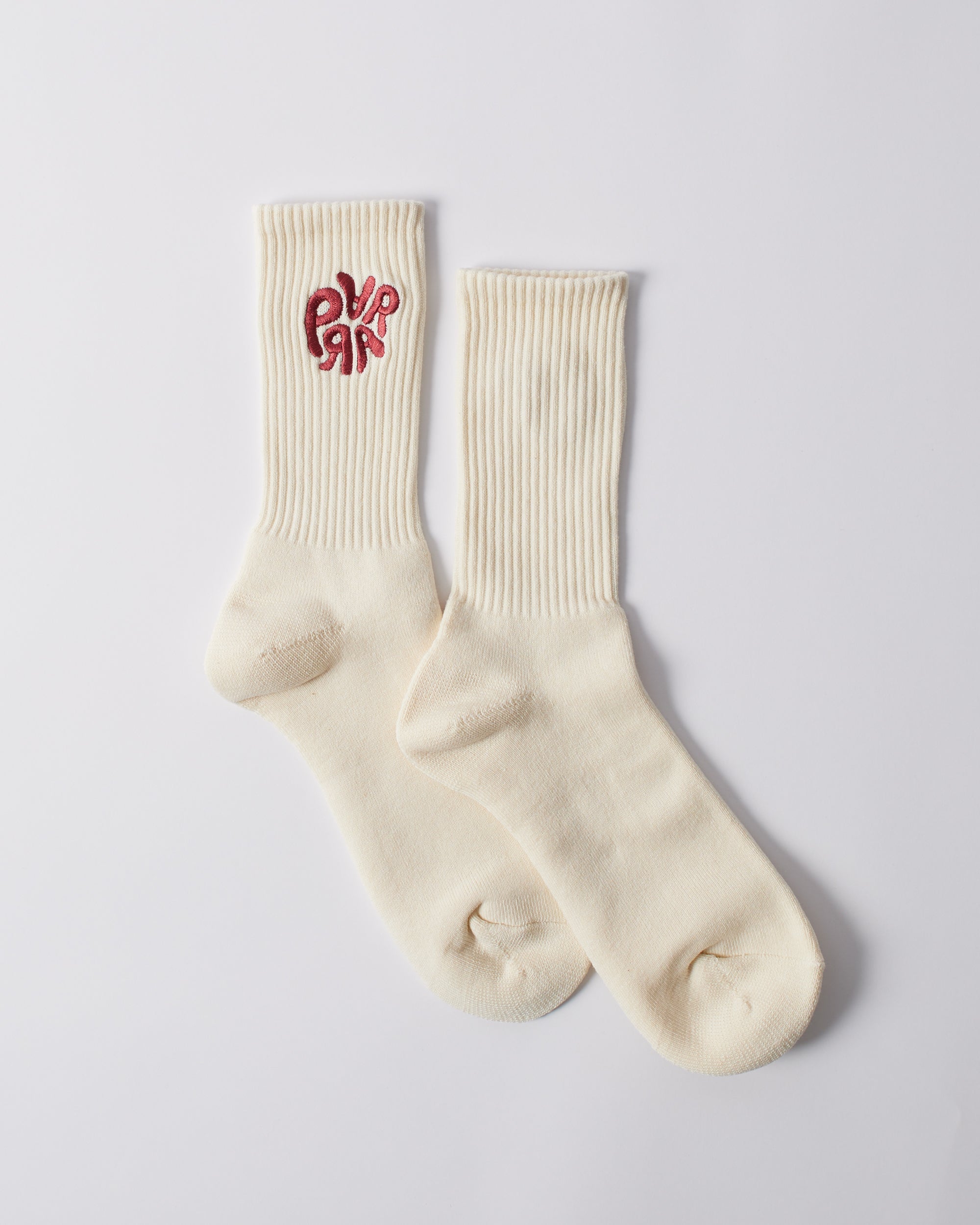 1976 logo embroidery on our premium fabric blend socks. Woven in Tokyo on a vintage circular knitting machine.