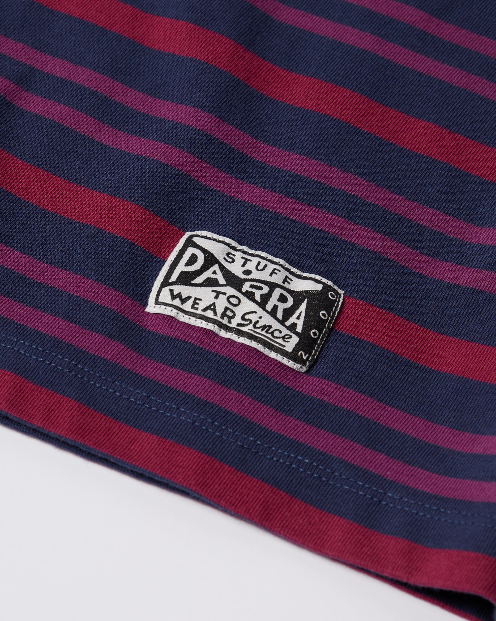 Custom woven striped cotton long sleeve. With a Parra woven label.