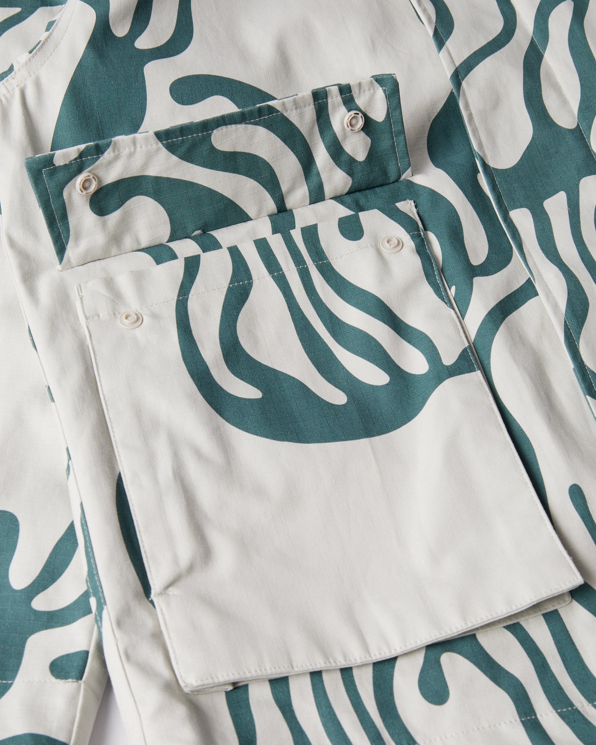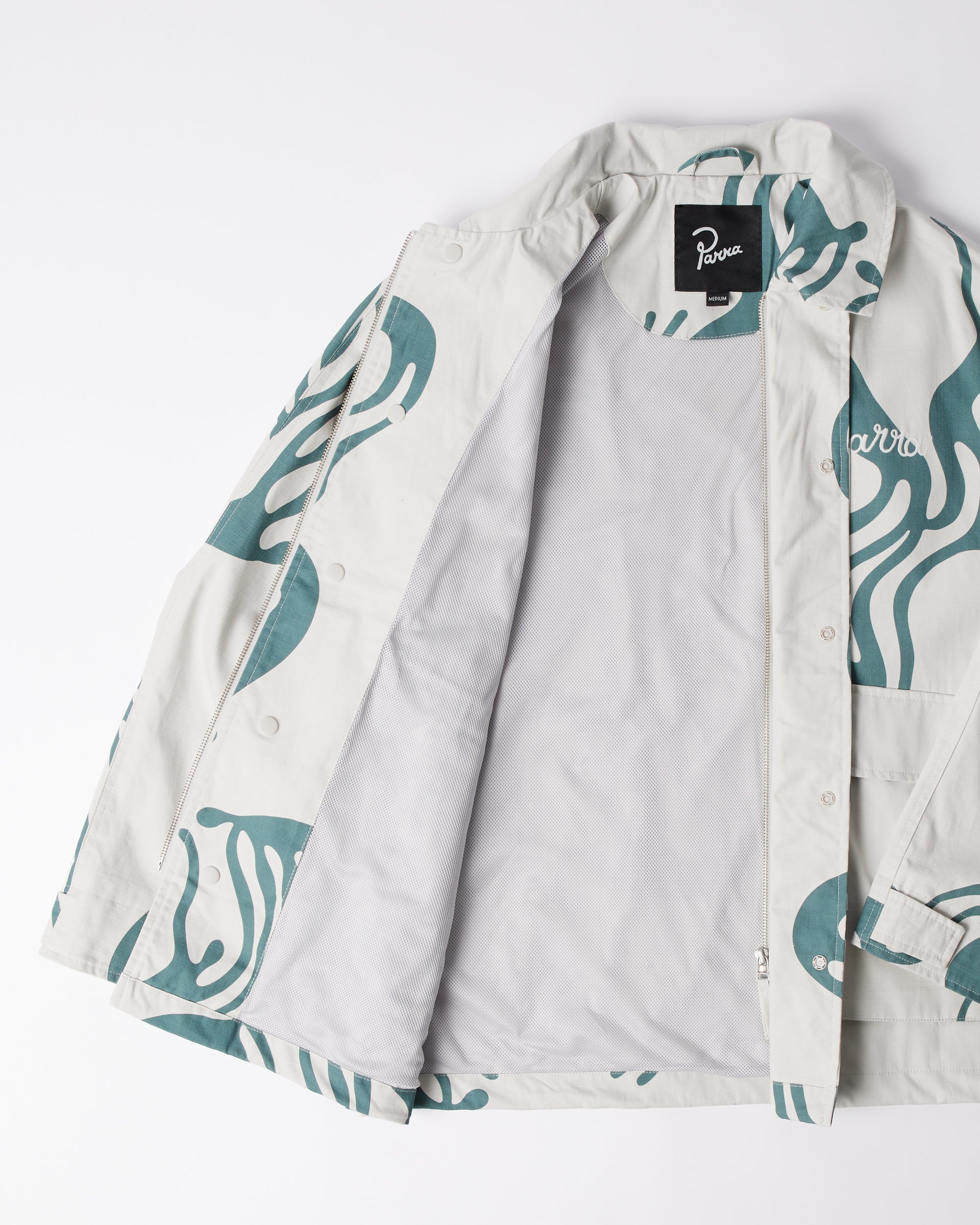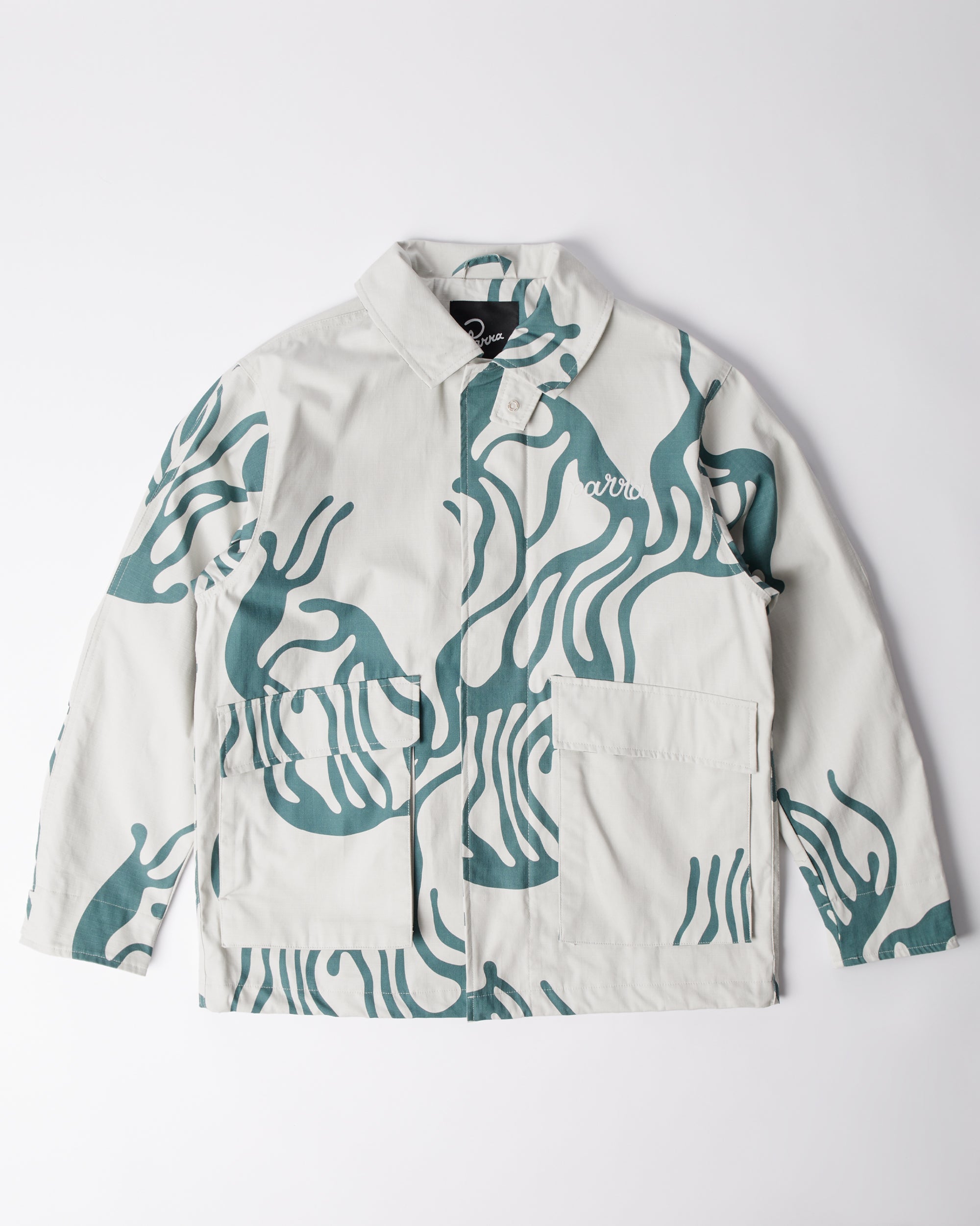 Classic jacket with big pockets on the front, made from light weight cotton ripstop fabric. Printed all over with the Blob artwork and Parra logo embroidery at the chest.