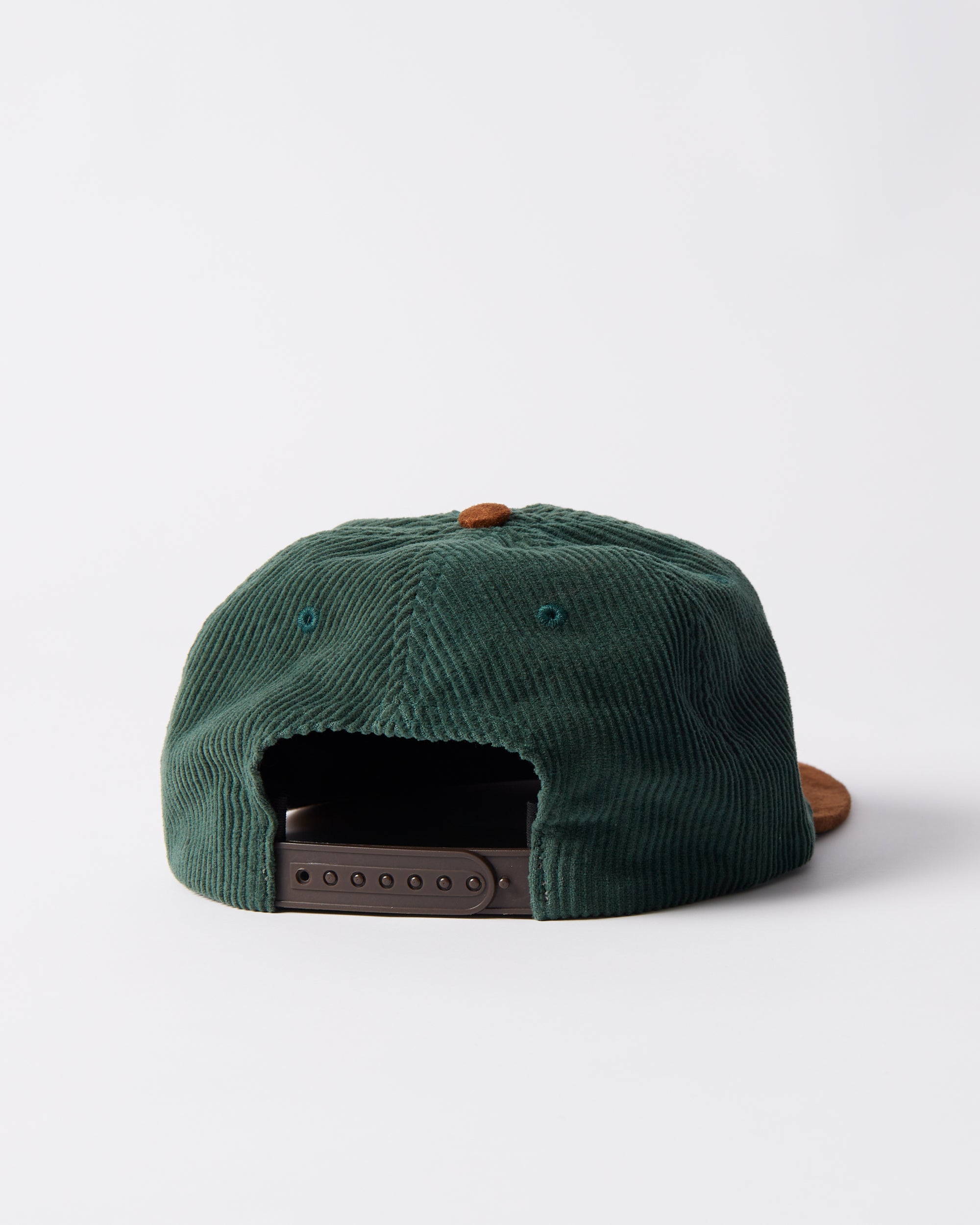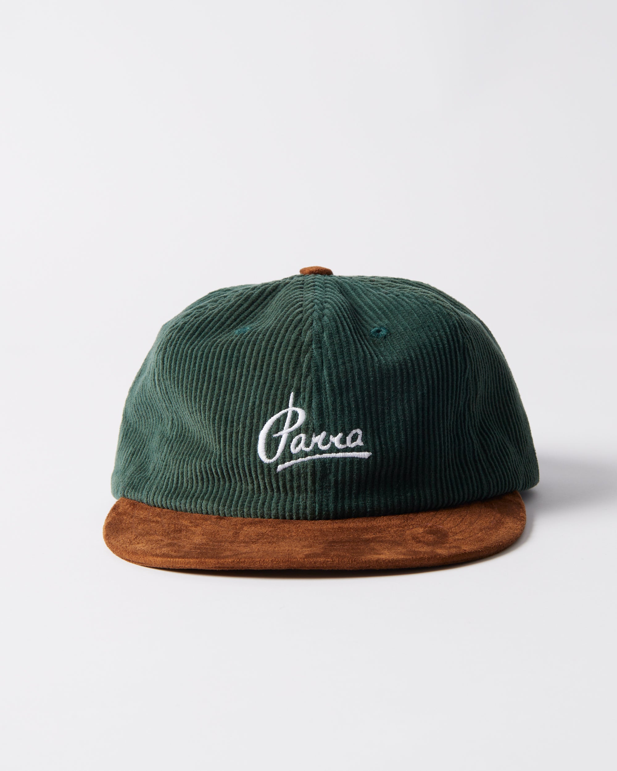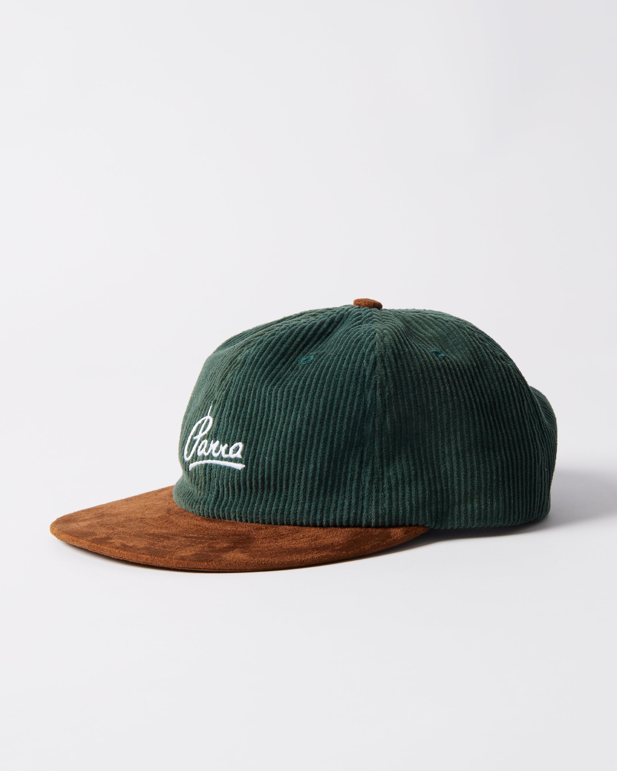Hat made of a corduroy cotton fabric with the Painters script logo embroidery on the front. The visor an top button is suede.