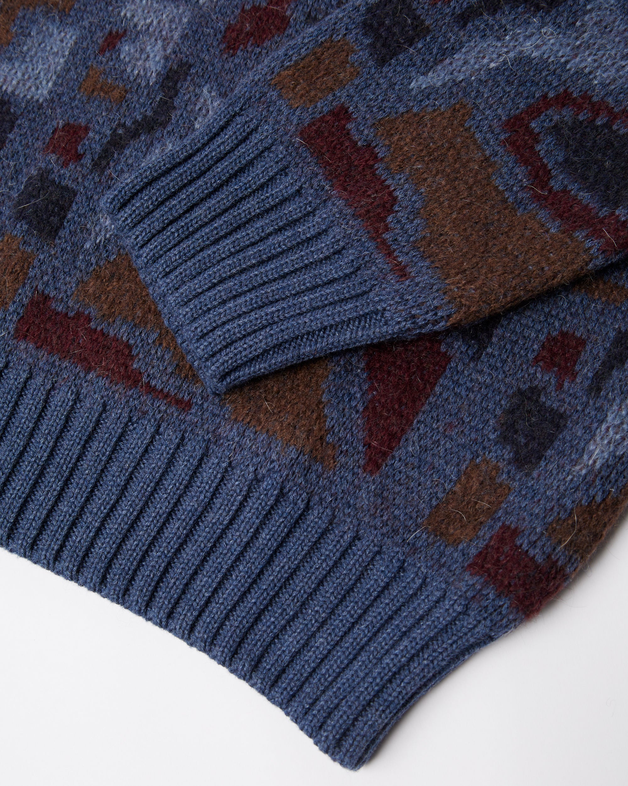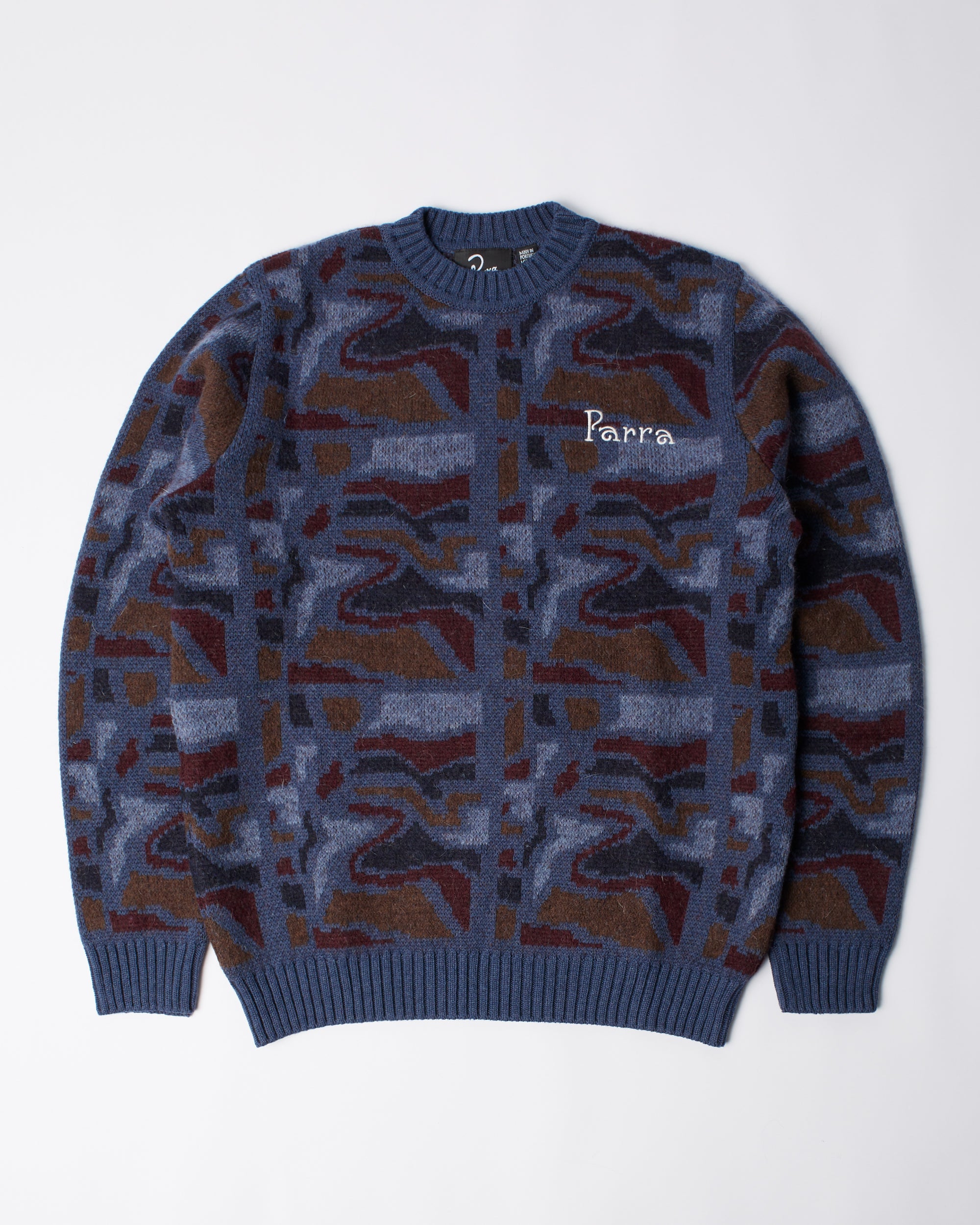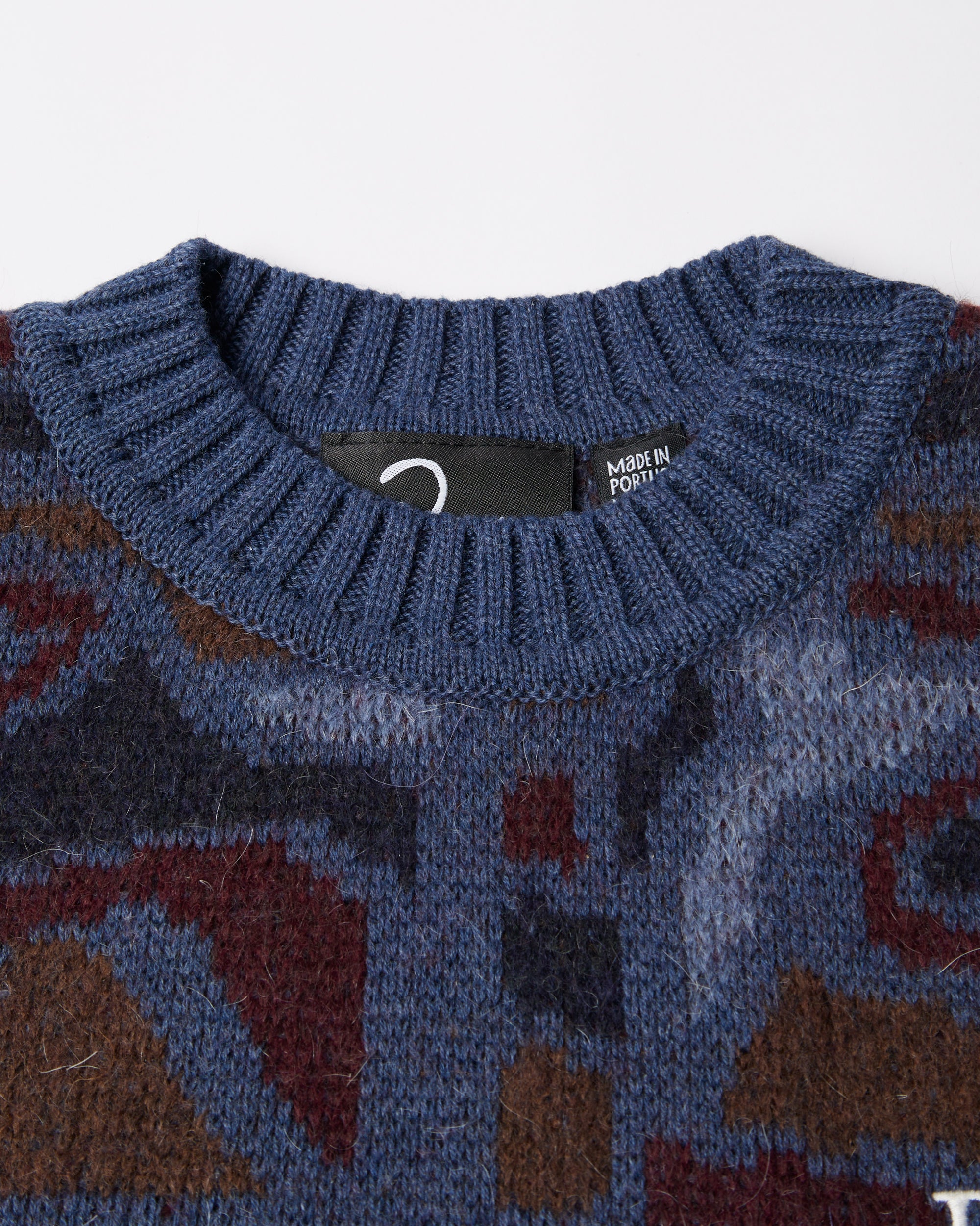Knitted pullover with the Repeat ftp booster artwork all over, and Weird trad logo embroidery on the chest.