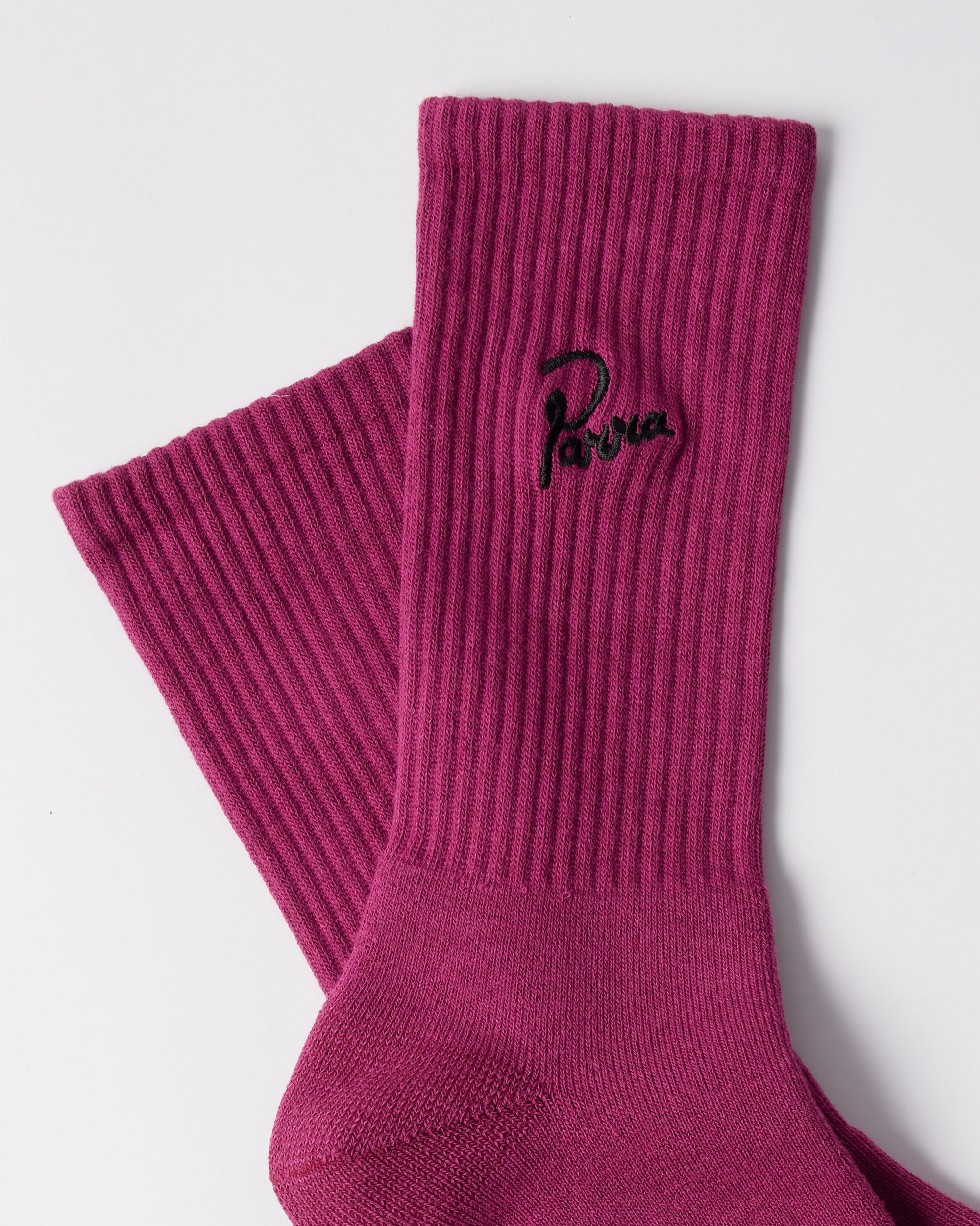 Classic signature logo embroidery on our premium fabric blend socks. Woven in Tokyo on a vintage circular knitting machine.