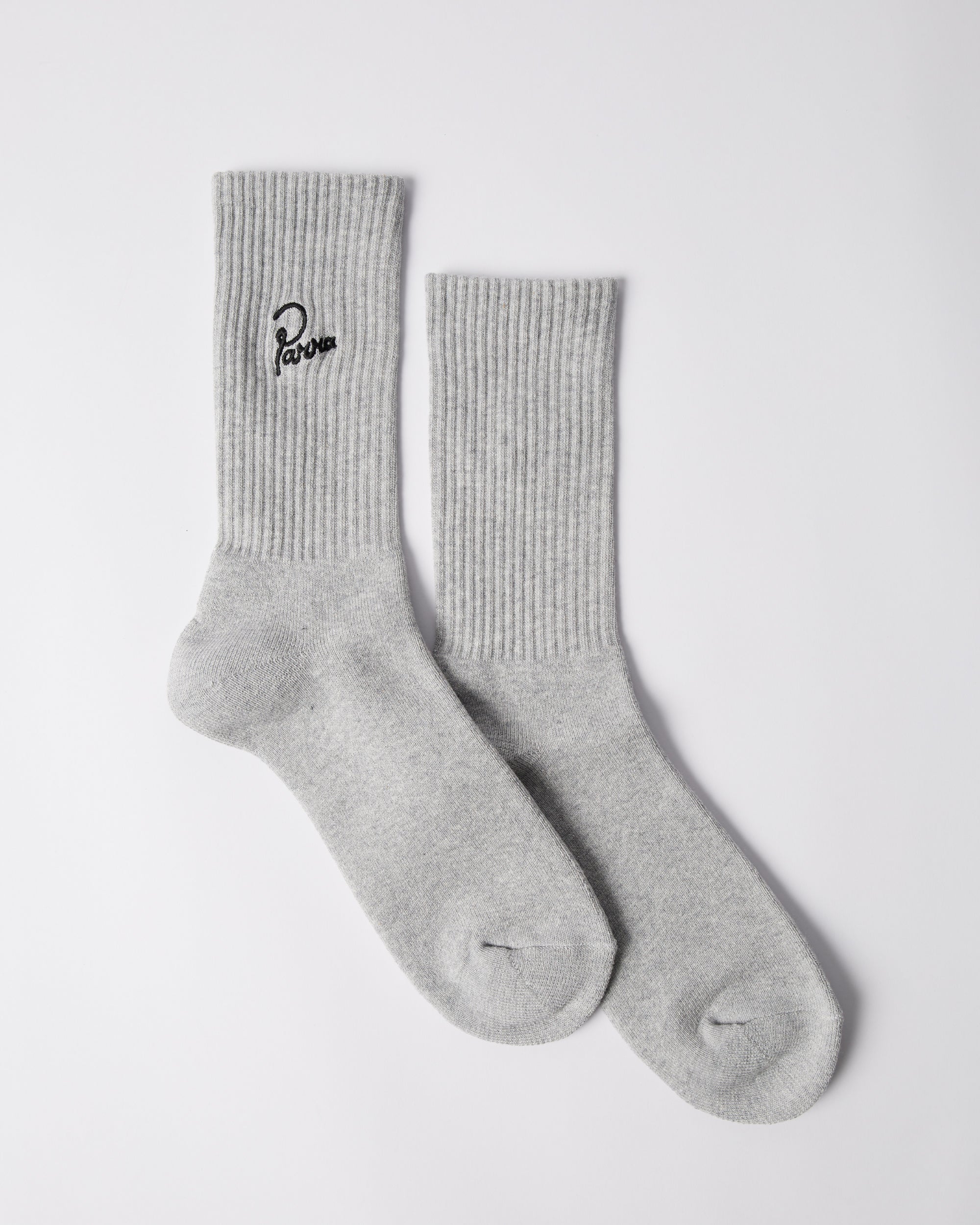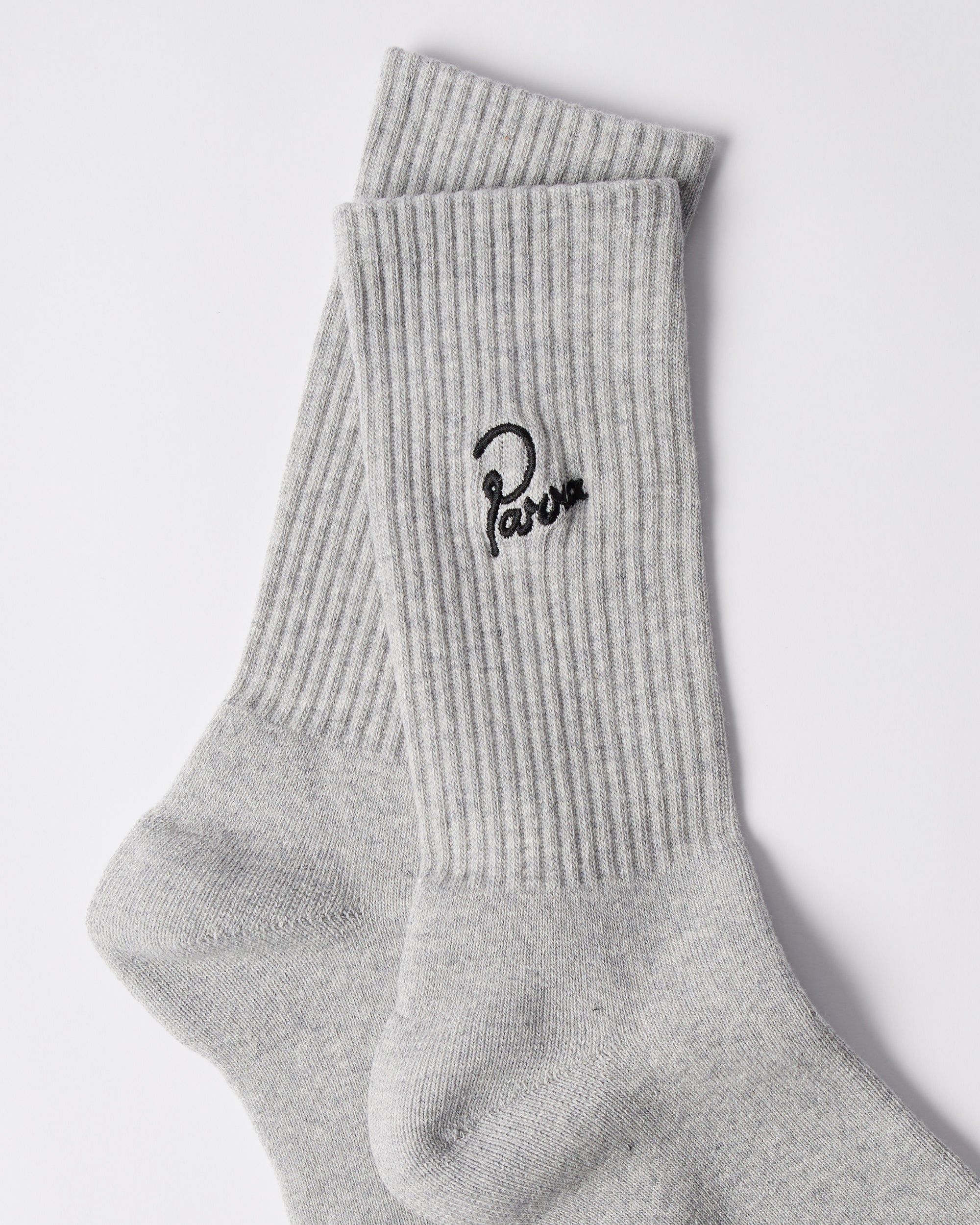 Classic signature logo embroidery on our premium fabric blend socks. Woven in Tokyo on a vintage circular knitting machine.