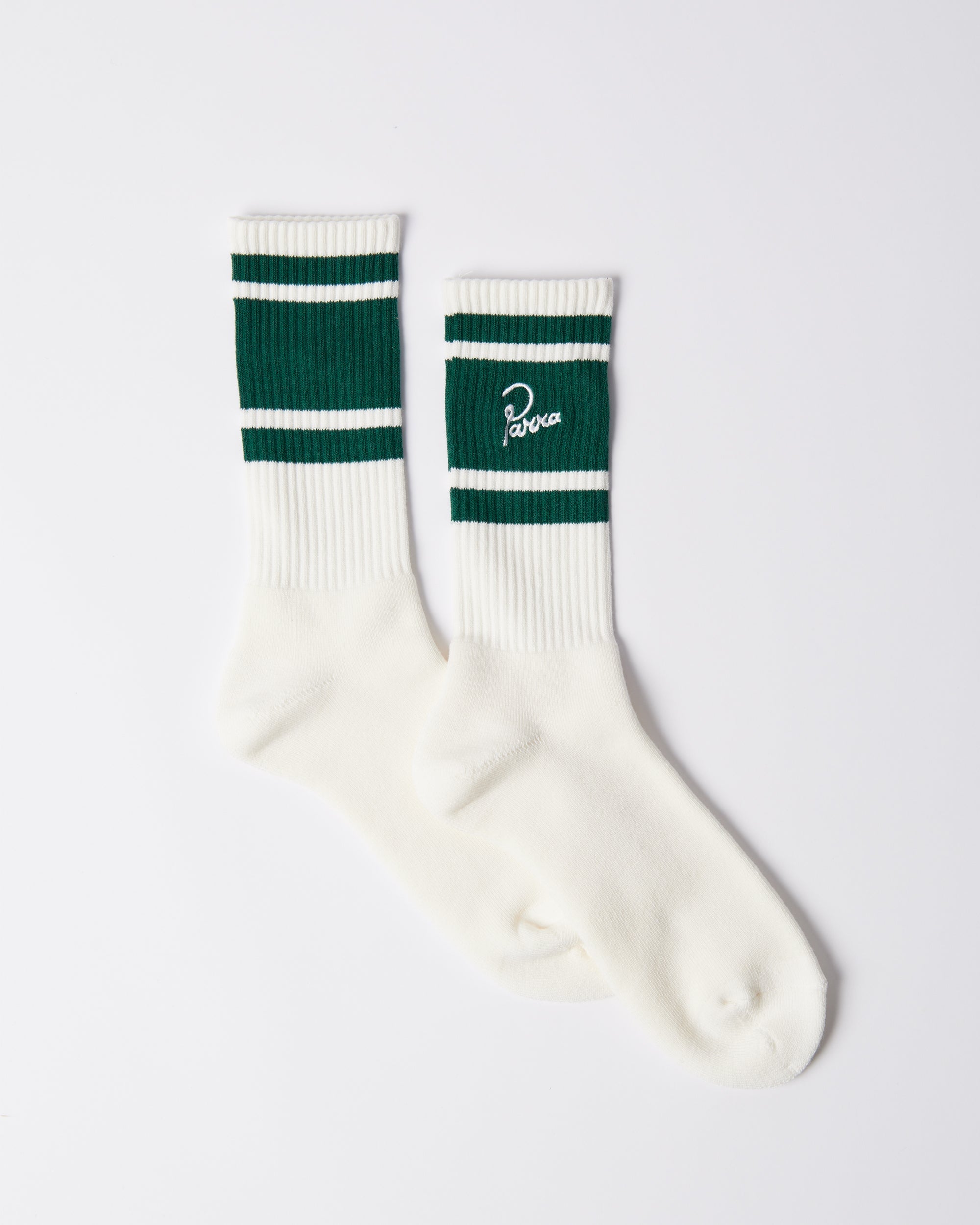 Classic signature logo embroidery on our premium fabric blend socks. Woven in Tokyo on a vintage circular knitting machine.