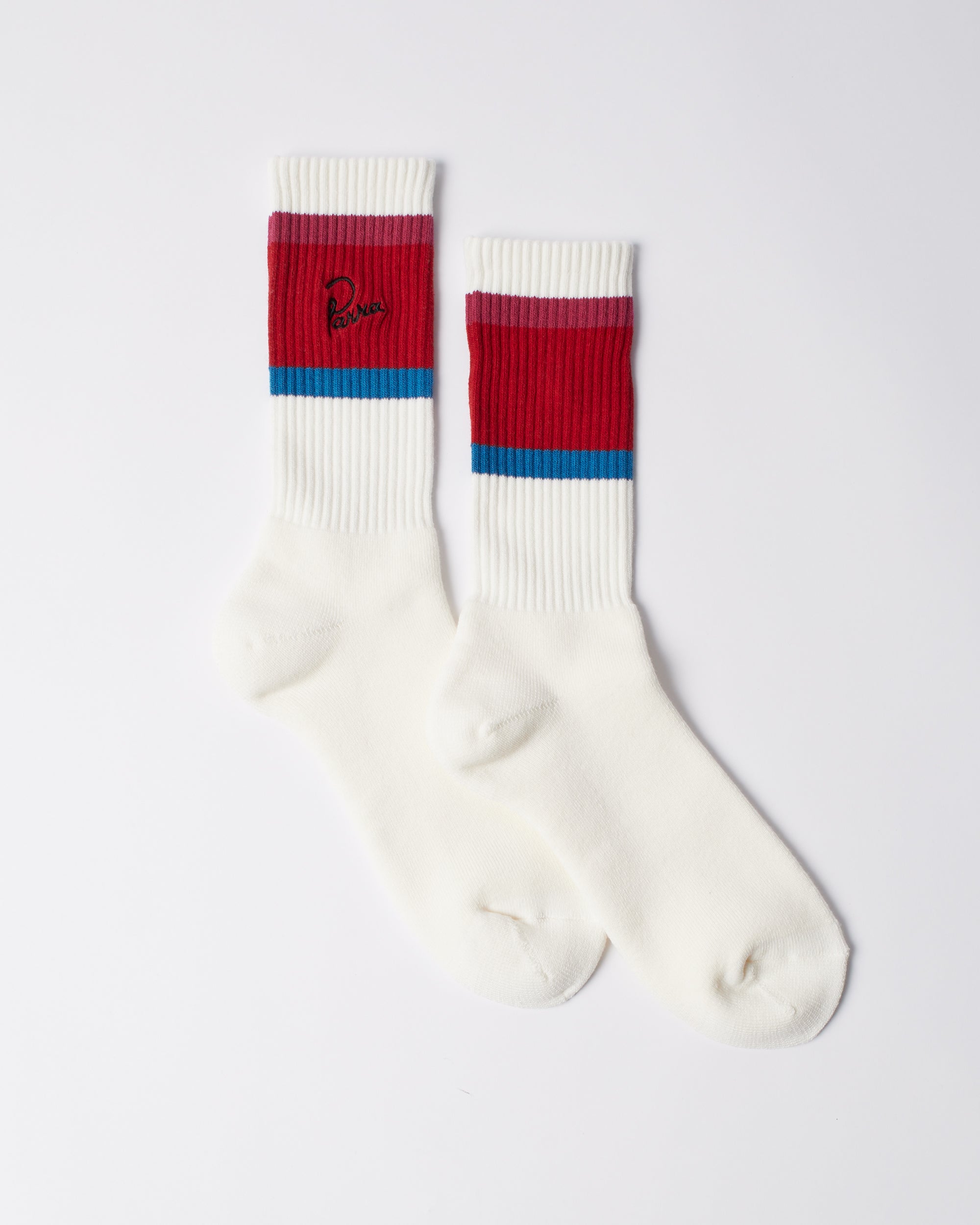 Classic signature logo embroidery on our premium fabric blend socks. Woven in Tokyo on a vintage circular knitting machine.