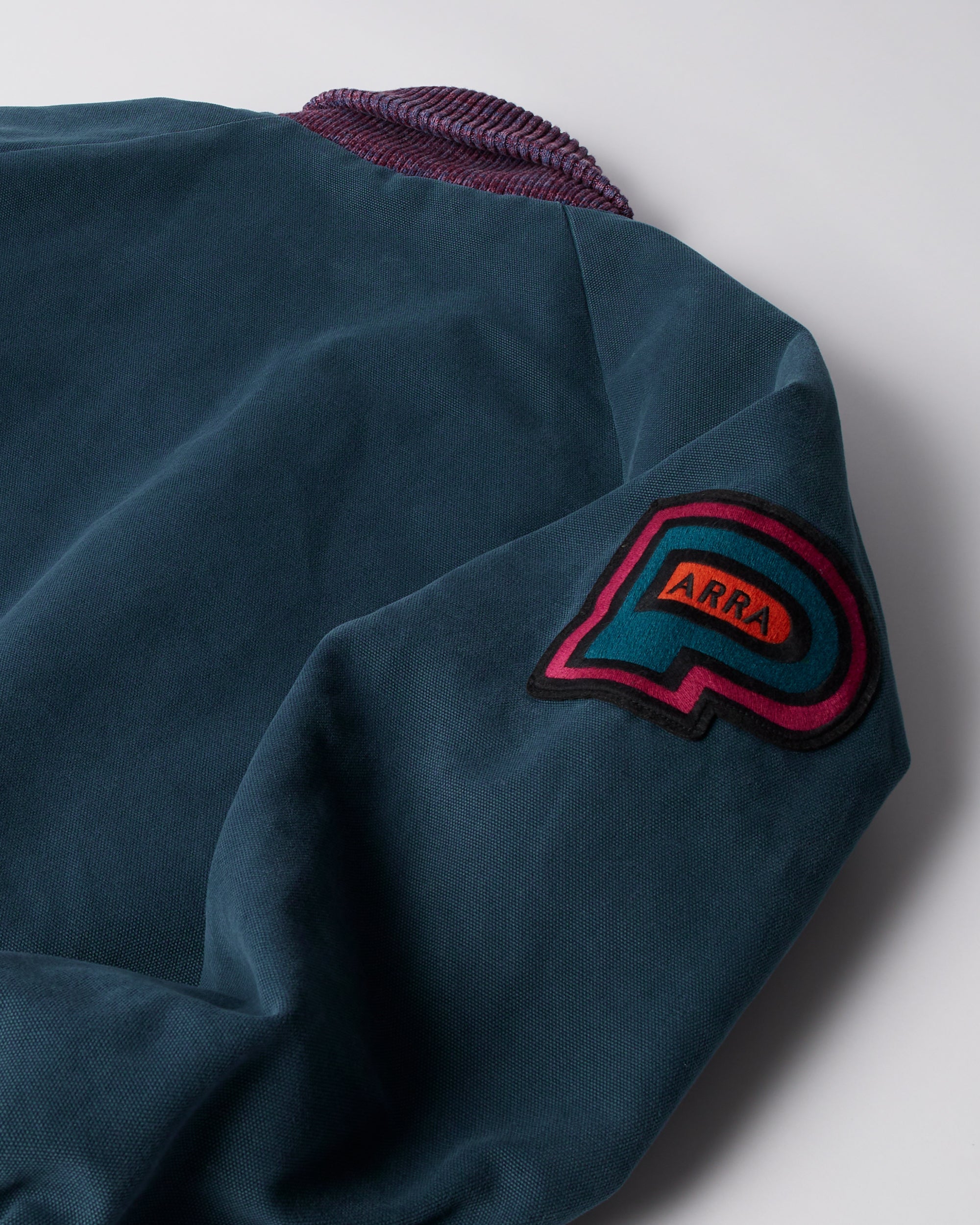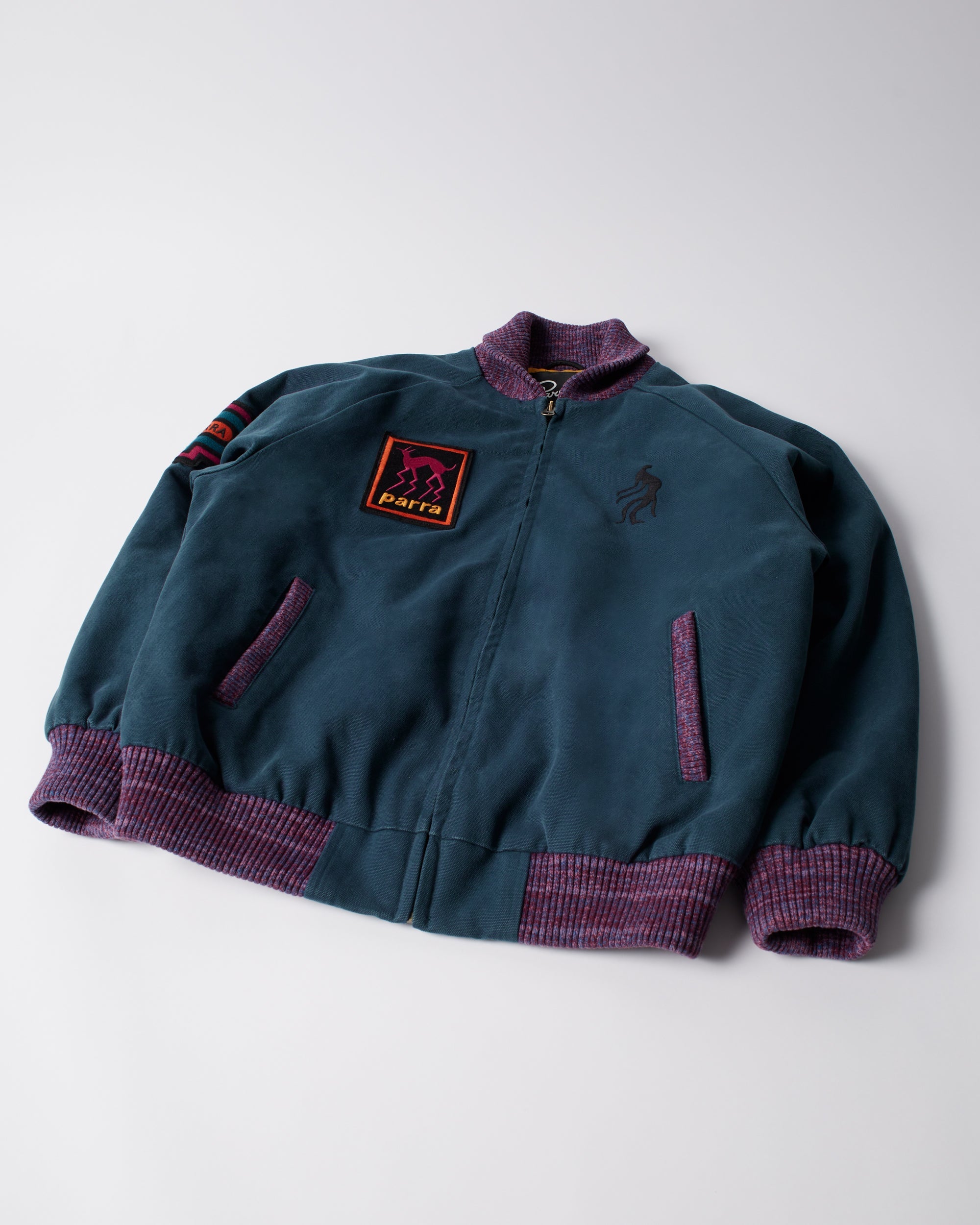 Cotton varsity jacket, classic fit with a folded collar. Skull stalker embroidery at chest, application on the chest and on the sleeve. Artwork printed on interior lining.