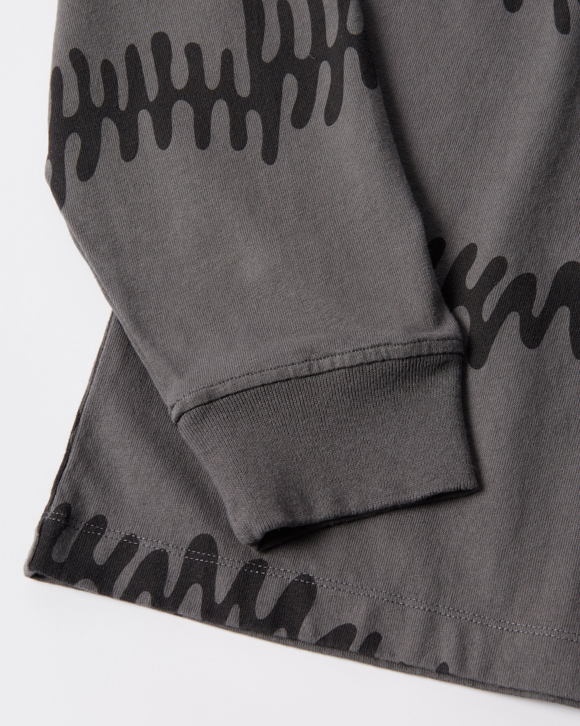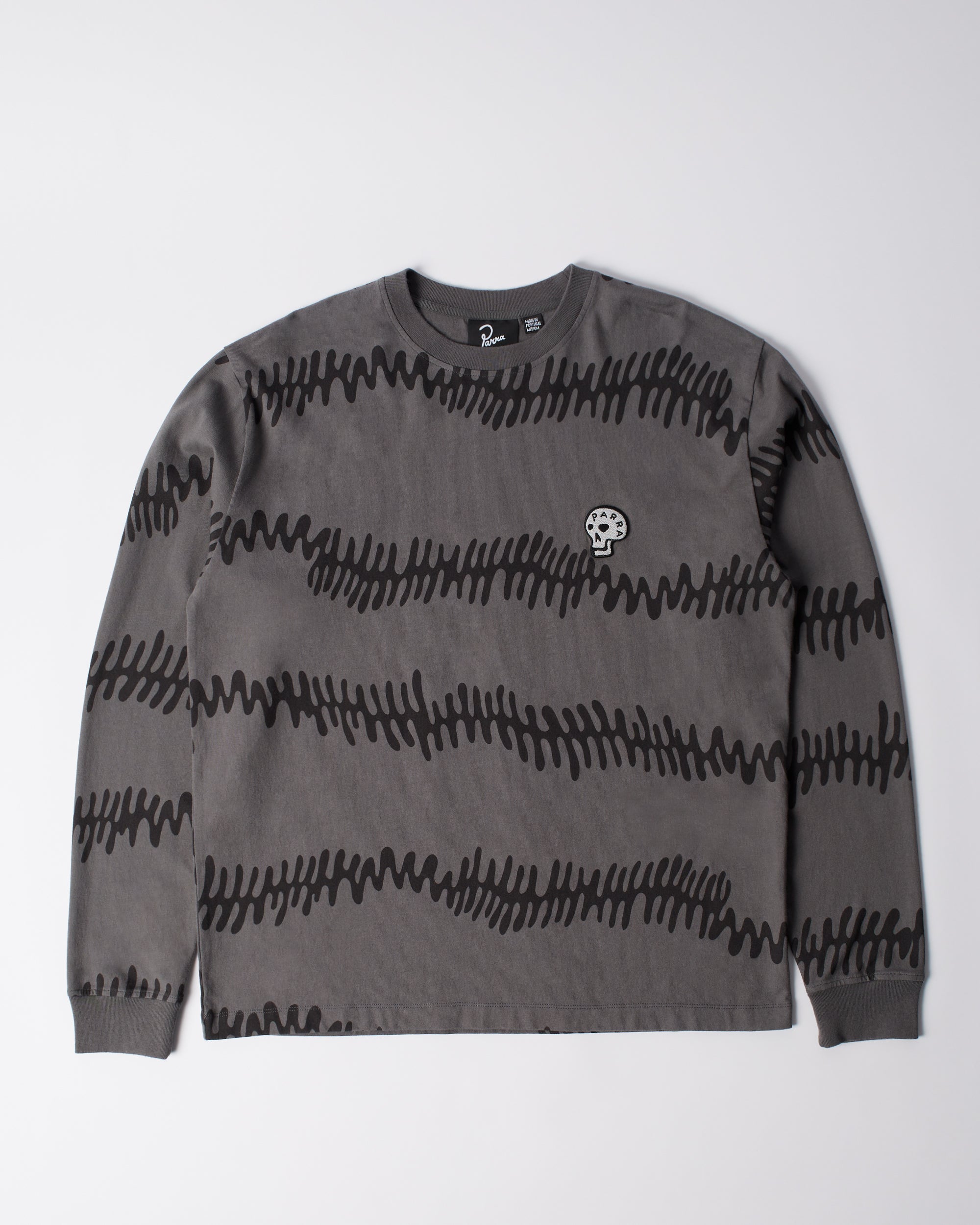 Roller printed waterbased screenprint on a cotton fabric. With a Stitched skull artwork as a embroidered patch at chest. All Parra longsleeves are a boxy custom fit.