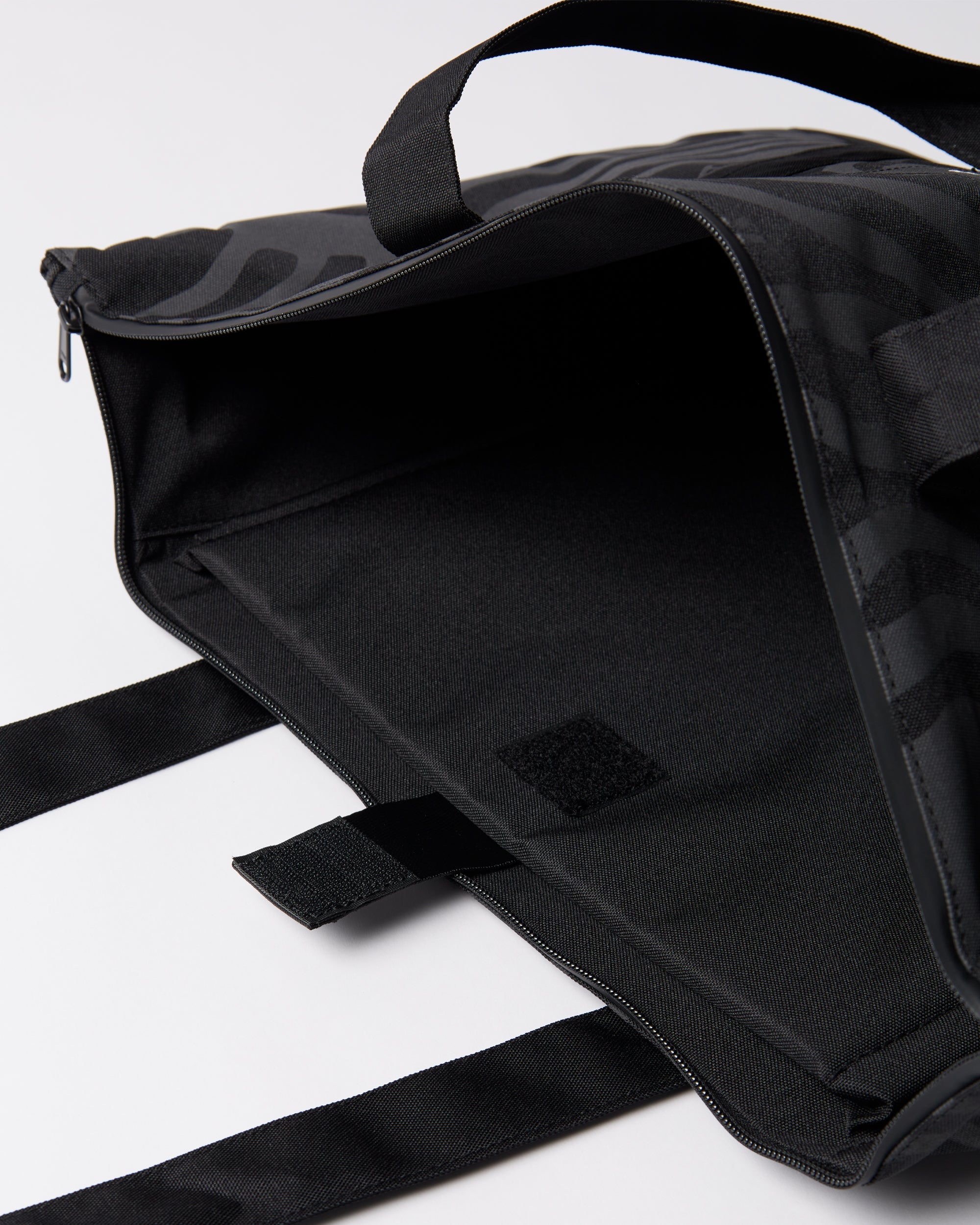 Big bag with an extra compartment inside for your laptop. The bag is printed all over with the Blob artwork.