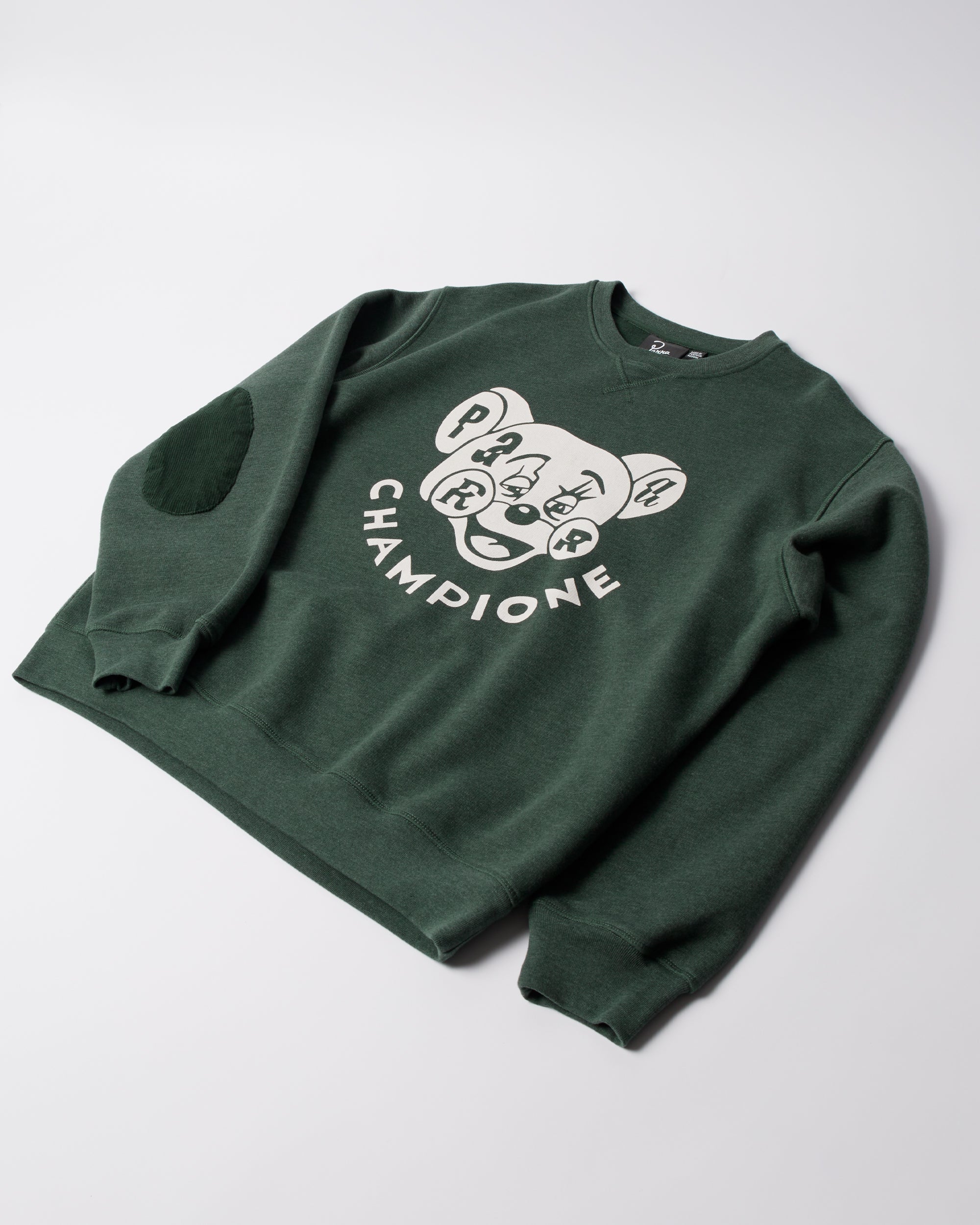 Crew neck sweatshirt with "Tired champione" artwork printed on the front. All by Parra sweaters have a custom boxy fit.