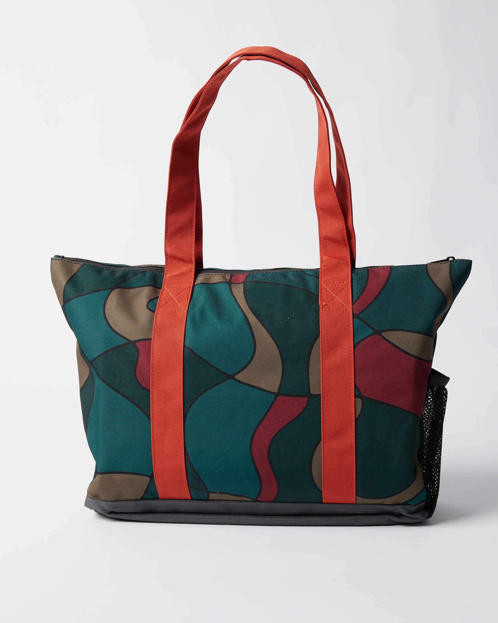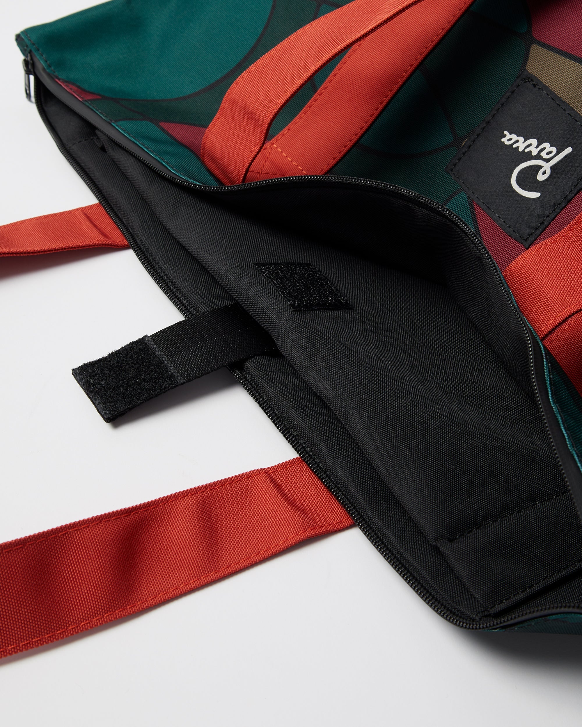 Water repellent bag with Trees in wind print all over. Extra compartment for laptop inside. 55 x 40 x 16 cm.