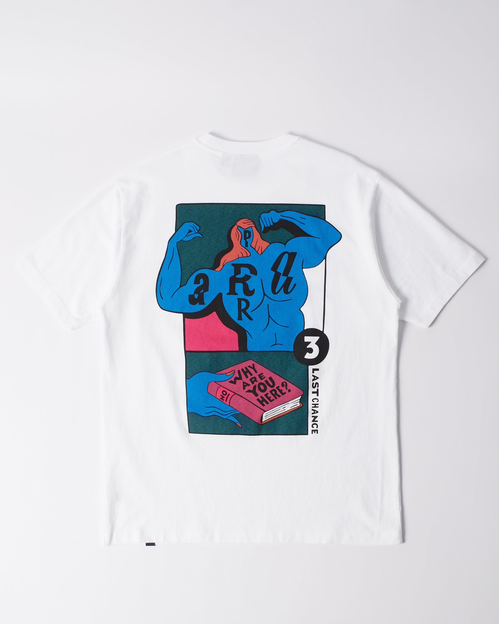 Printed on the back with "Why are you here" artwork. And a Parra logo printed on the chest. All by Parra tees are a custom boxy fit.