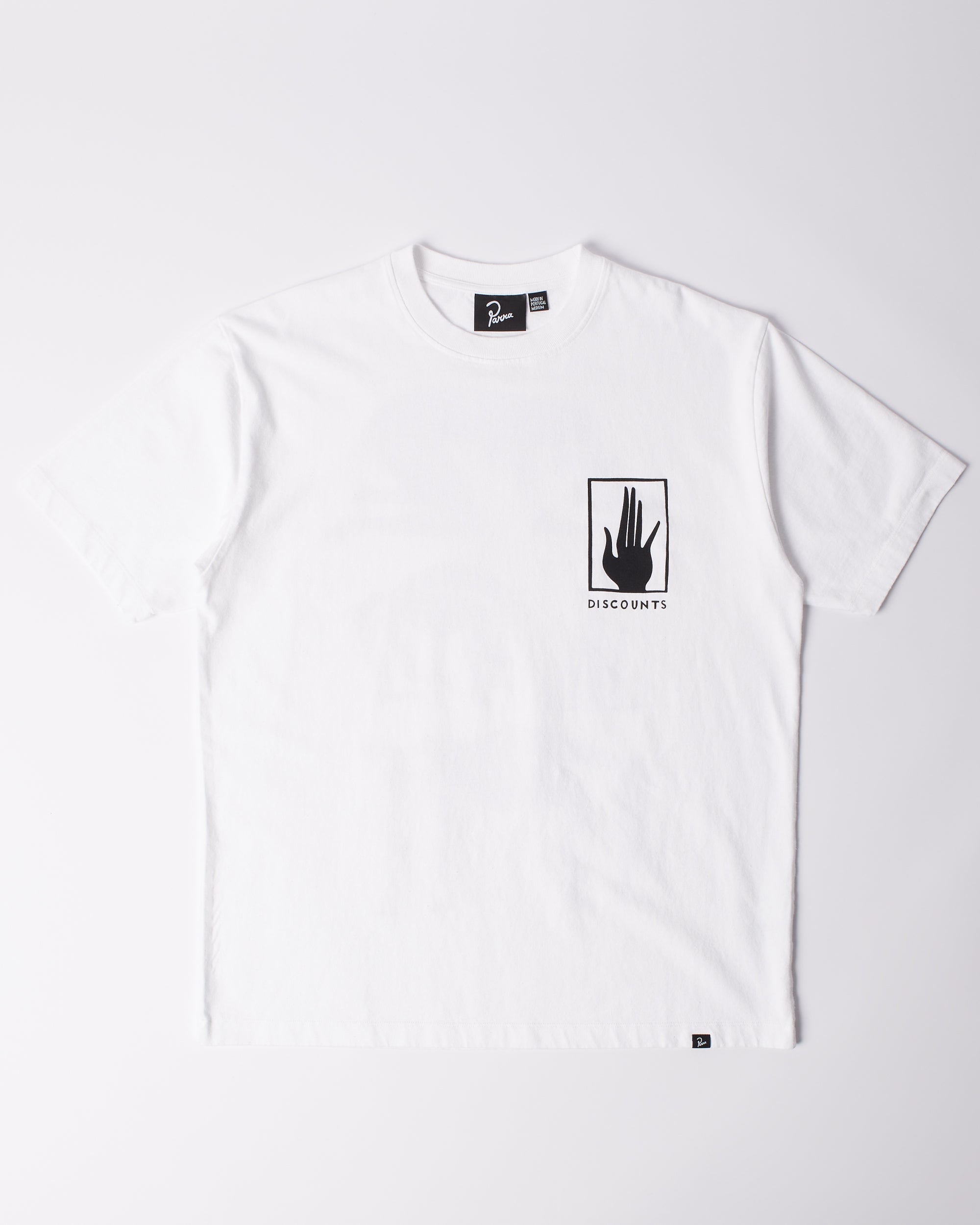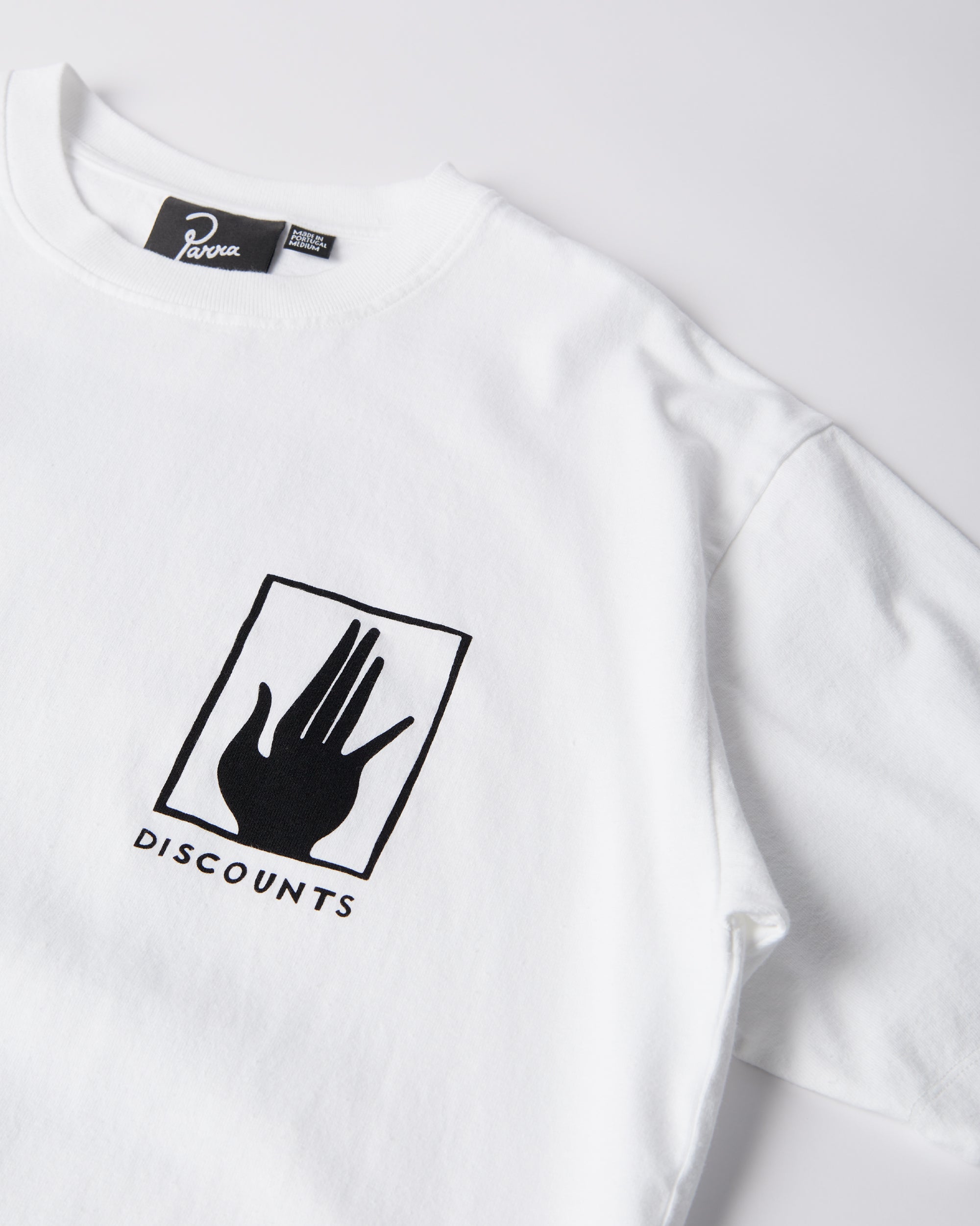 Yoga discounts artwork as a water-based screen print at the back and also small print on the chest. All Parra t-shirts are a boxy custom fit.